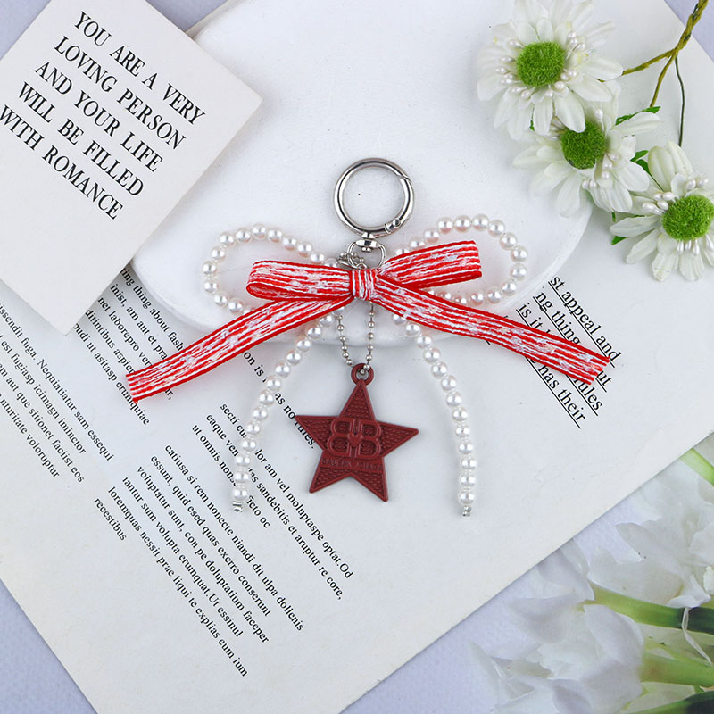 Portachiavi con fiocco di lusso cinturino da polso con perla graziosi anelli portachiavi per bambine